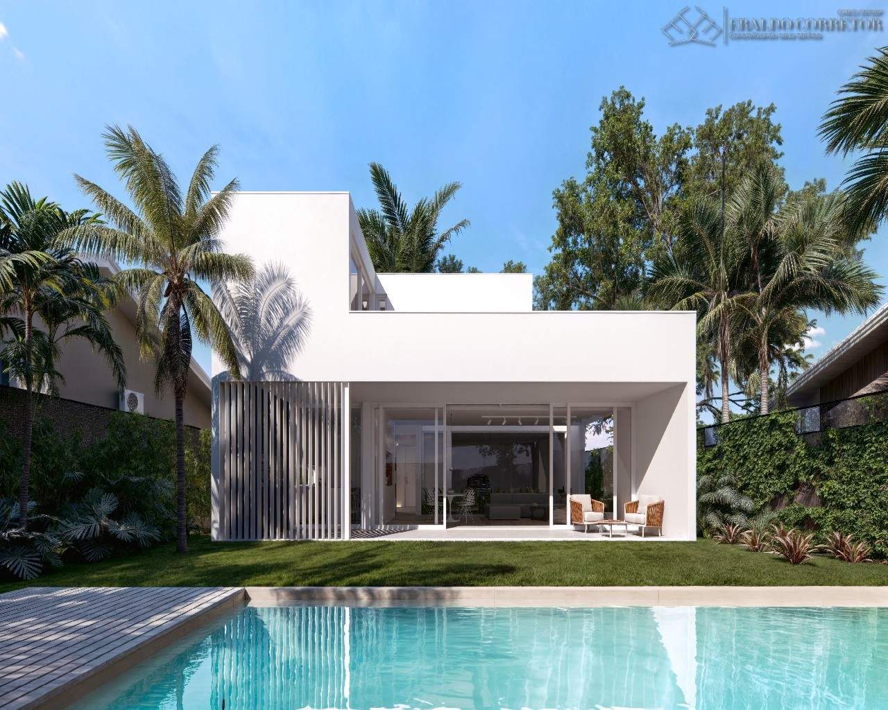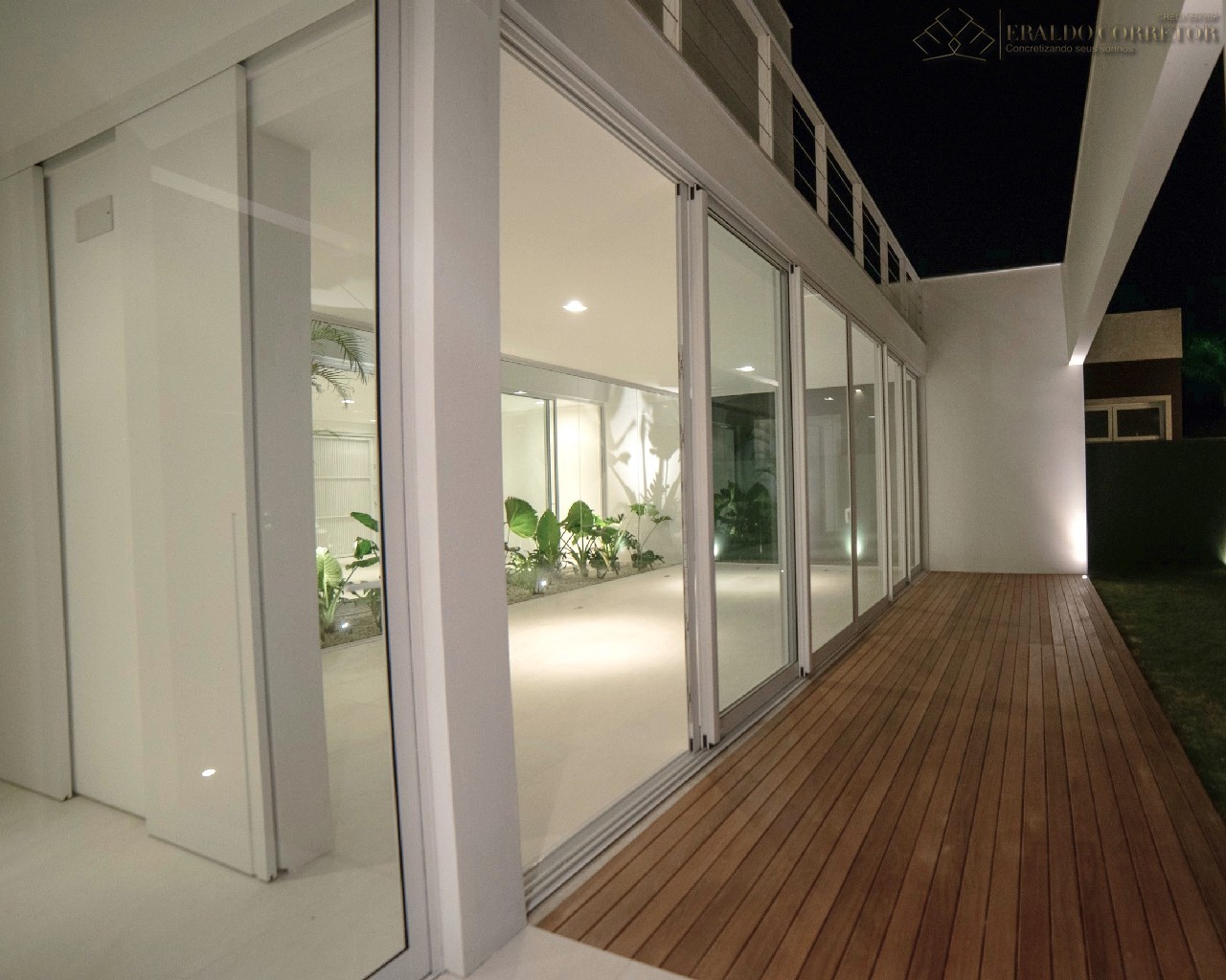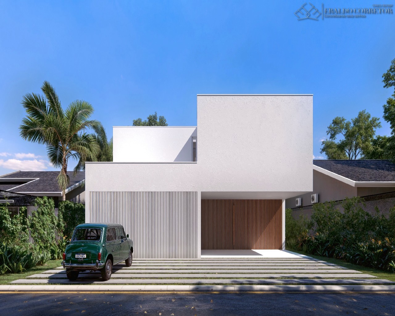 - Porta principal revestida em ripado alumínio amadeirado e ACM;