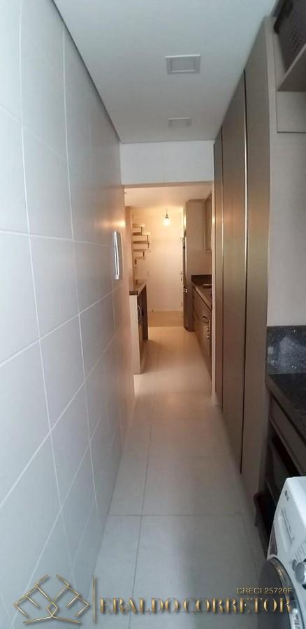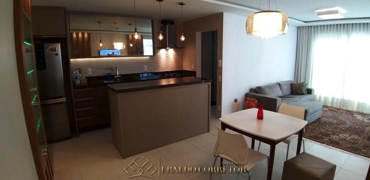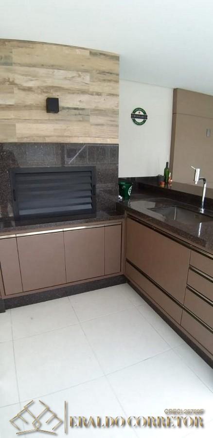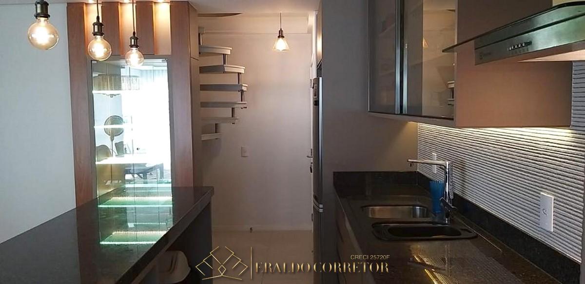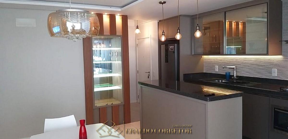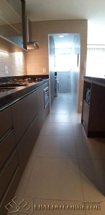 A cobertura possui 3 dormitórios, sendo 1 suítes, 1 banheiro social, sala de estar e jantar integradas à cozinha, área de serviço, churrasqueira, garagem coberta para 1 carro e hobby box.